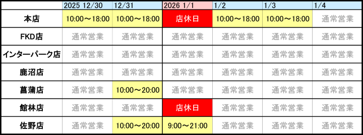 平素より上野文具をご利用いただき、誠にありがとうございます。 年末年始は一部の店舗で営業時間の変更がございますので、ご確認のうえ、ご来店・ご利用下さいますようお願いを申し上げます。 ※上野文具 公式オンラインストア・楽天市場店につきましては、2025年1月1日(木)は休業とさせて頂き、翌1月2日(金)より順次対応をさせて頂きます。