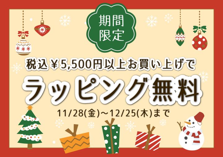 税込5,500円以上のお買い上げで「クリスマスラッピング」を無料で承ります!